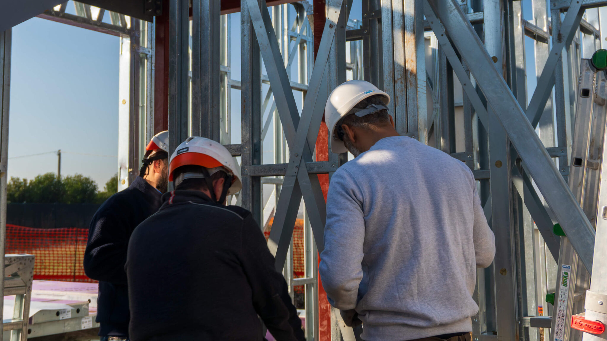In questo progetto è stata scelta la soluzione ibrida con acciaio laminato a caldo e a freddo. Le strutture portanti sono in acciaio a caldo, mentre verrà impiegato l’acciaio a freddo nelle orditure e tamponamenti. Questo assicurerà rapidità, precisione e isolamento continuo.